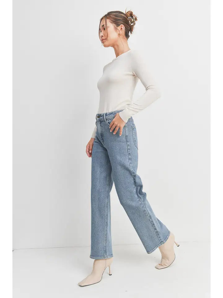 A full-length straight jean with a little extra room through the hips and legs. Light weight denim with a little stretch. THE BEST pair of jeans.