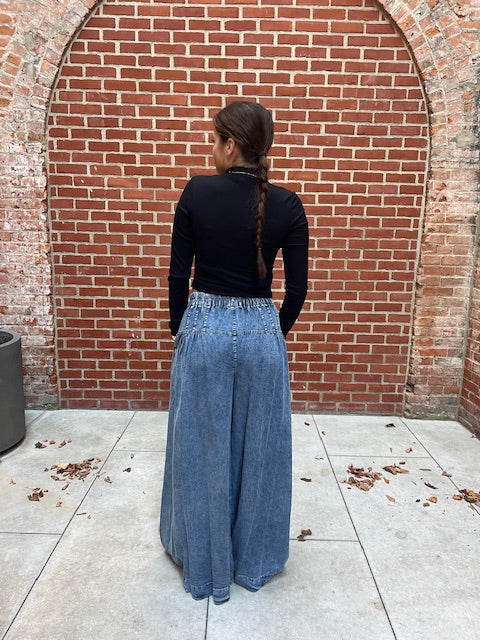 These pintuck wide-leg pants, crafted from luxurious Tencel fabric, offer a perfect blend of comfort and sophistication. The smooth, eco-friendly Tencel material drapes beautifully, creating a soft, fluid silhouette that flows effortlessly with every step. These pants provide a breathable, lightweight feel, making them perfect for warmer weather or layering in cooler months. With their timeless style and sustainable fabric, these pants are a versatile and eco-conscious wardrobe staple.